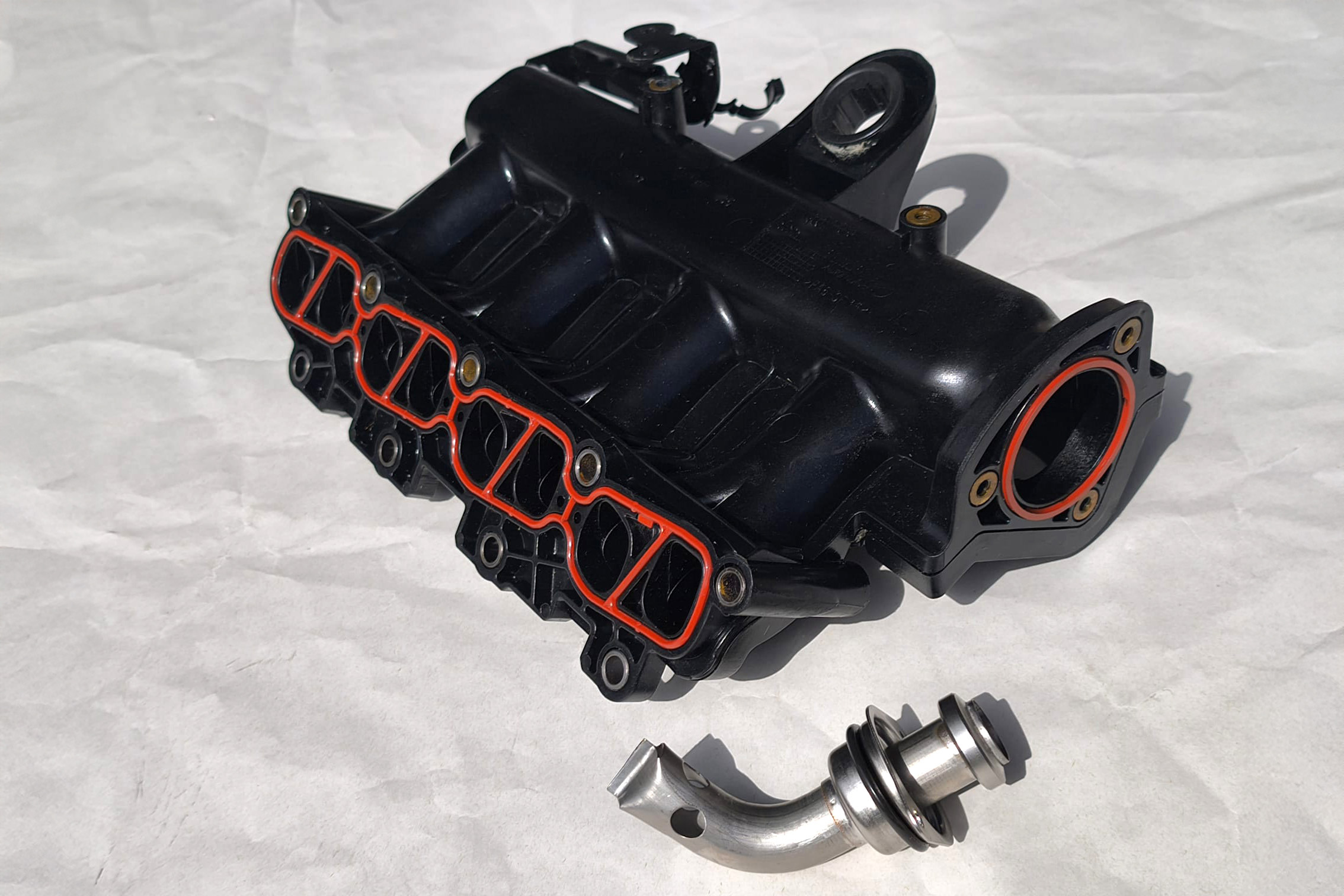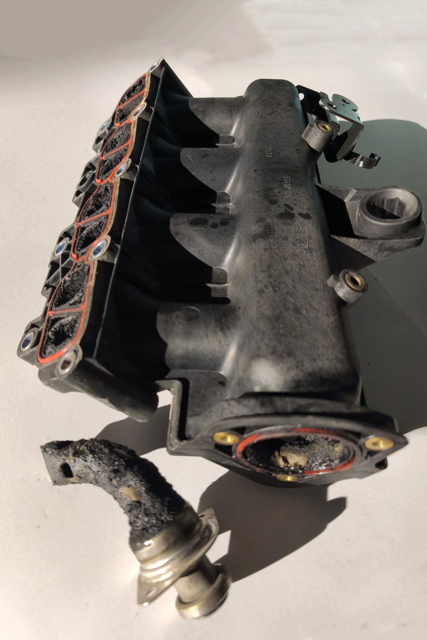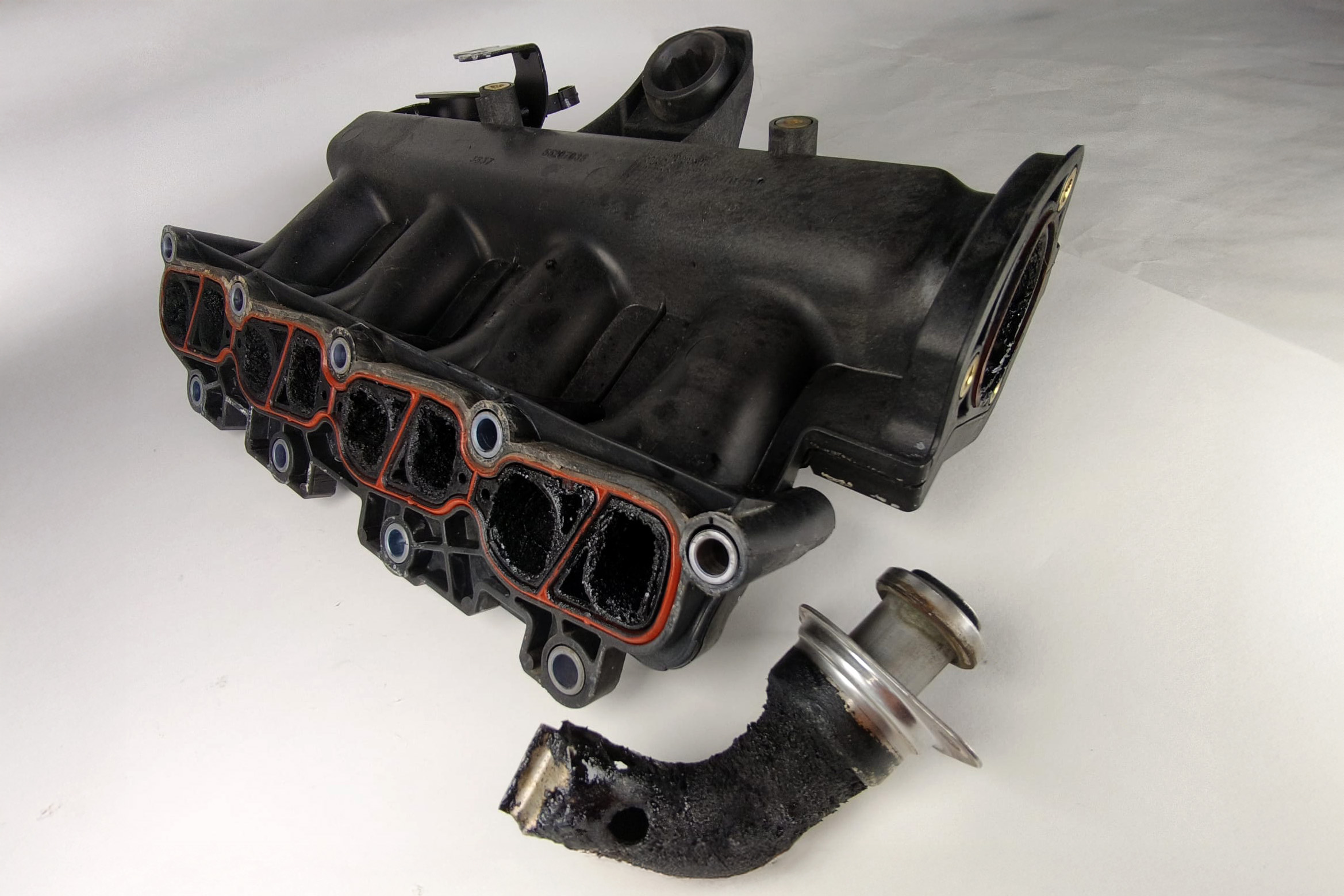Le foto “del prima” parlano da sole: condotti rivestiti da uno strato spesso, irregolare e appiccicoso, completamente annerito. È il risultato diretto del ricircolo dei gas di scarico (EGR) e dei vapori olio provenienti dal basamento. Una miscela che, depositandosi, diminuisce progressivamente la massa di aria (e ossigeno) comburente al motore.